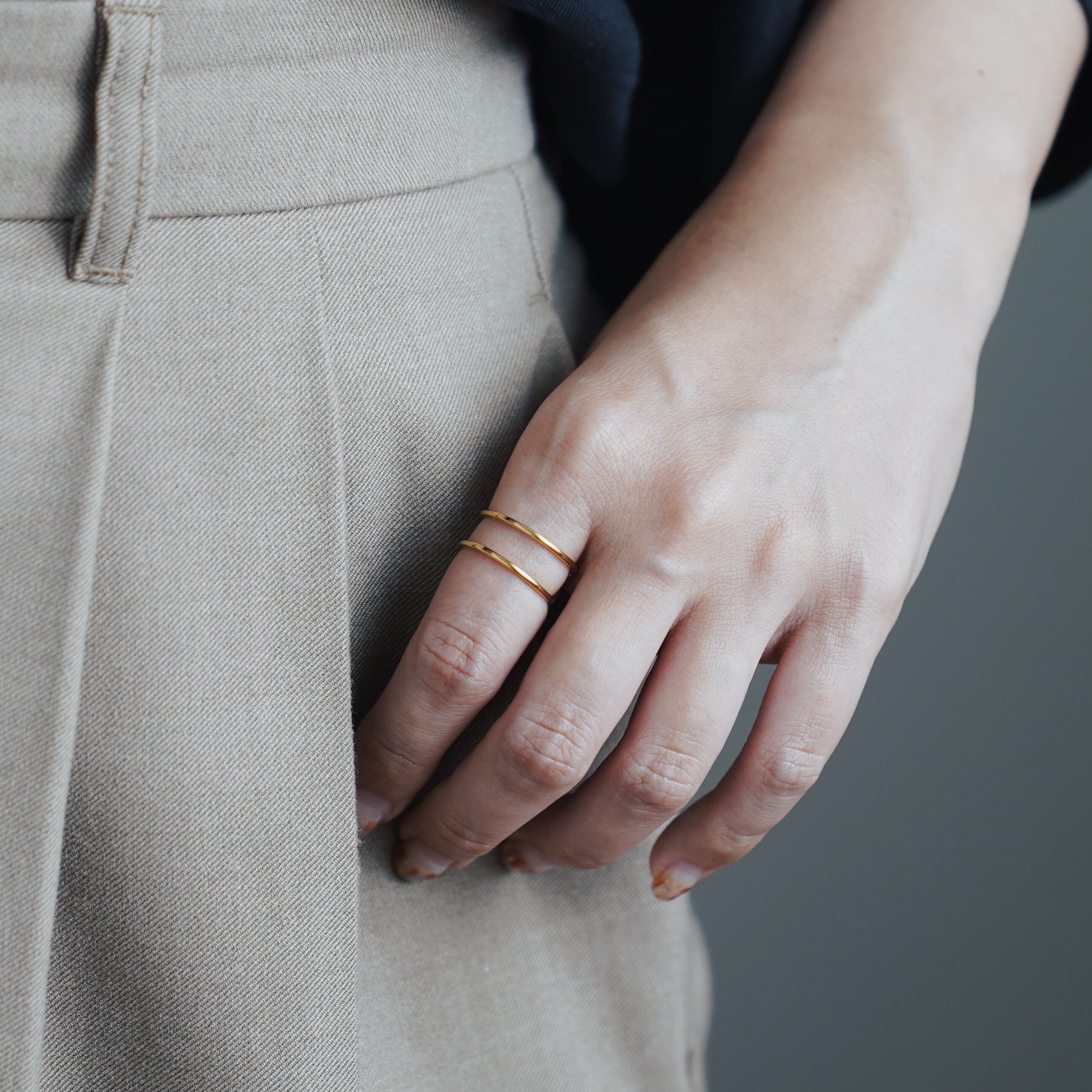 2連デザインの使いやすいオープンタイプのリング。
